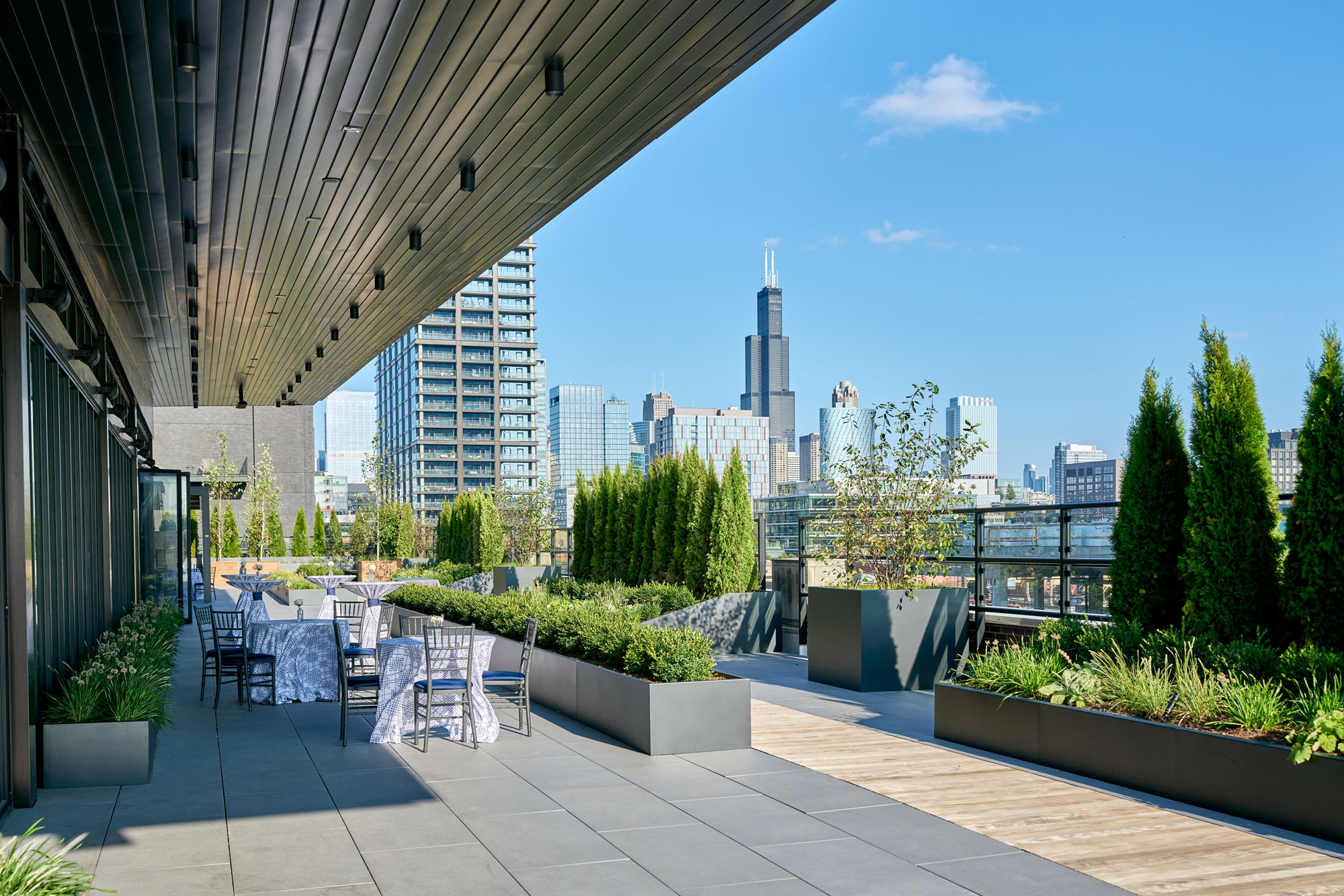 Located in Chicago’s Fulton Market District, Blue Plate’s rooftop garden sits atop one of the city’s premier luxury catering venues. Spanning 5,600 square feet, the space was designed to deliver a high-end hospitality experience while meeting strict structural and performance requirements.